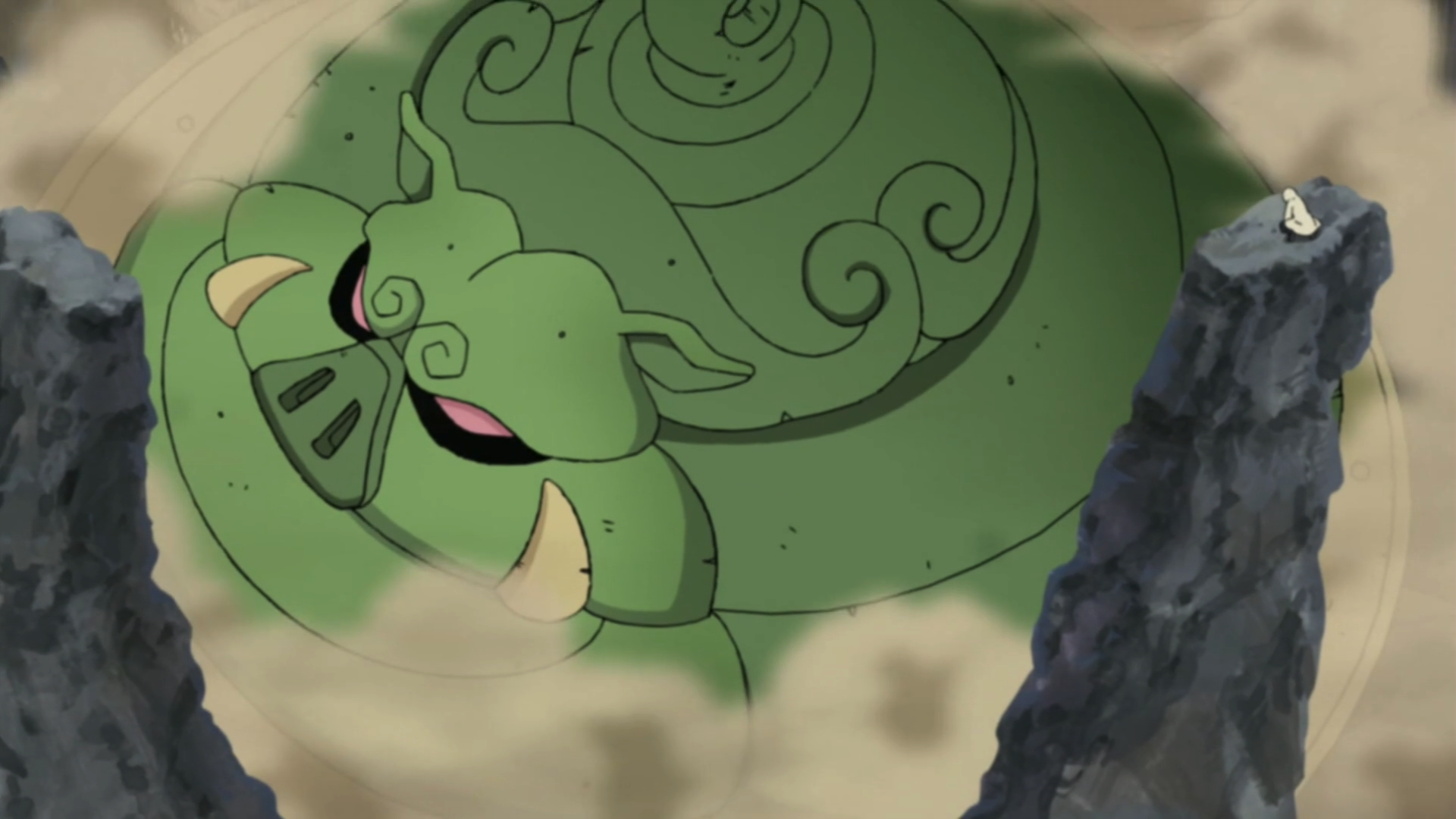During Pain's assault on Konoha, he was part of a three man team with Zō and another Anbu captain. When the team encountered one of the Animal Path's summon's, they notified an Anbu that was at the Konohagakure Intelligence Division. While the other captains immobilised and trapped the dog, he summoned a gigantic earth structure to crush the summon, but the attack was unsuccessful. After releasing that it was a special kind of summon, they began searching for the summoner. When Pain attacked the Intelligence Division, he and the other Anbu assisted Ibiki while Inoichi's group escaped. As they attacked the dog again, they used "Formation B", but was unsuccessful again. After being injured, Katsuyu attached herself to him and began healing his wounds. The Anbu captains continued fighting the Animal Path until she retreated and de-summoned all her summons in Konoha. After Pain destroyed the village, he and the other captains survived the attack and guarded Ibiki, while Katsuyu healed him.