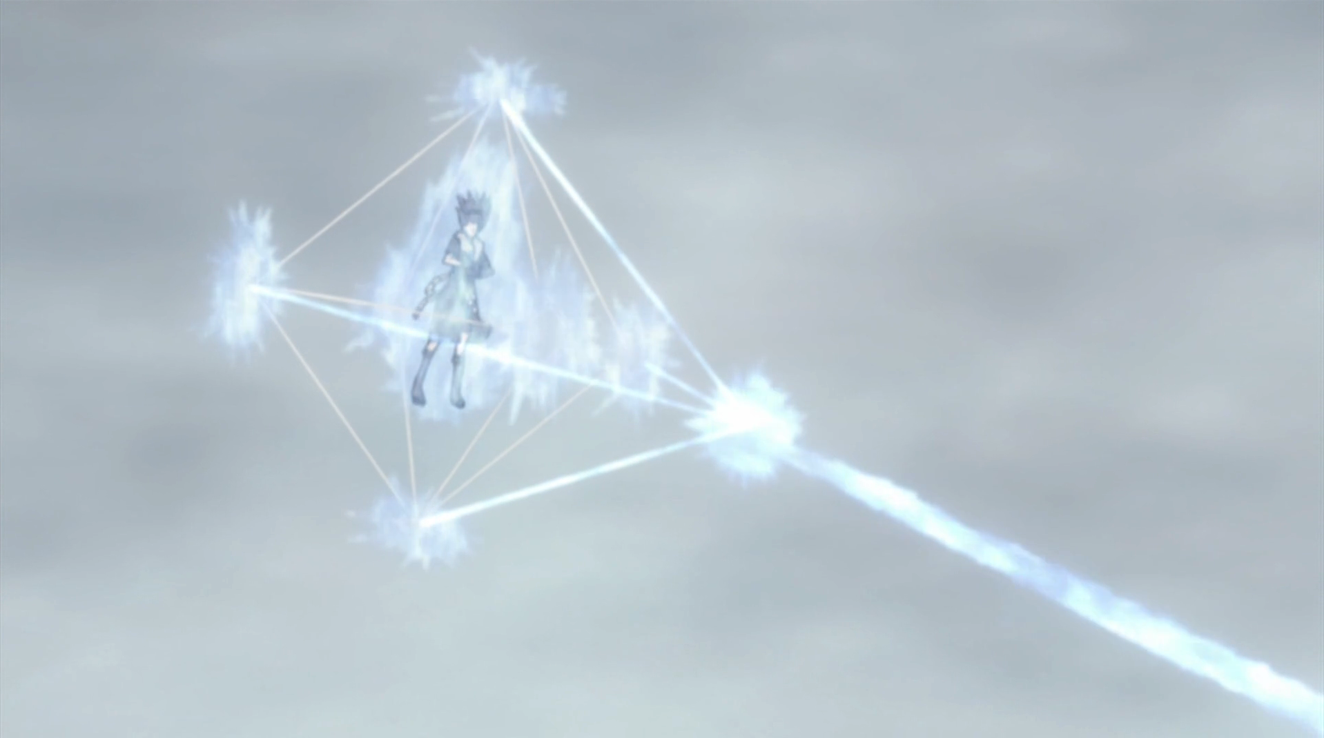 After using the Pressure Points of Harm and Death technique, Guren encases herself in a prism of transparent blue crystal. The prism can hover in the air, but seems to be immobile. However, the prism protects her from almost any attack, as it was capable of withstanding a barrage of continuous Rasengan, only shattering in the end. In addition, this technique allows her to attack by focusing her chakra into powerful heat blasts launched through the prism's tip.