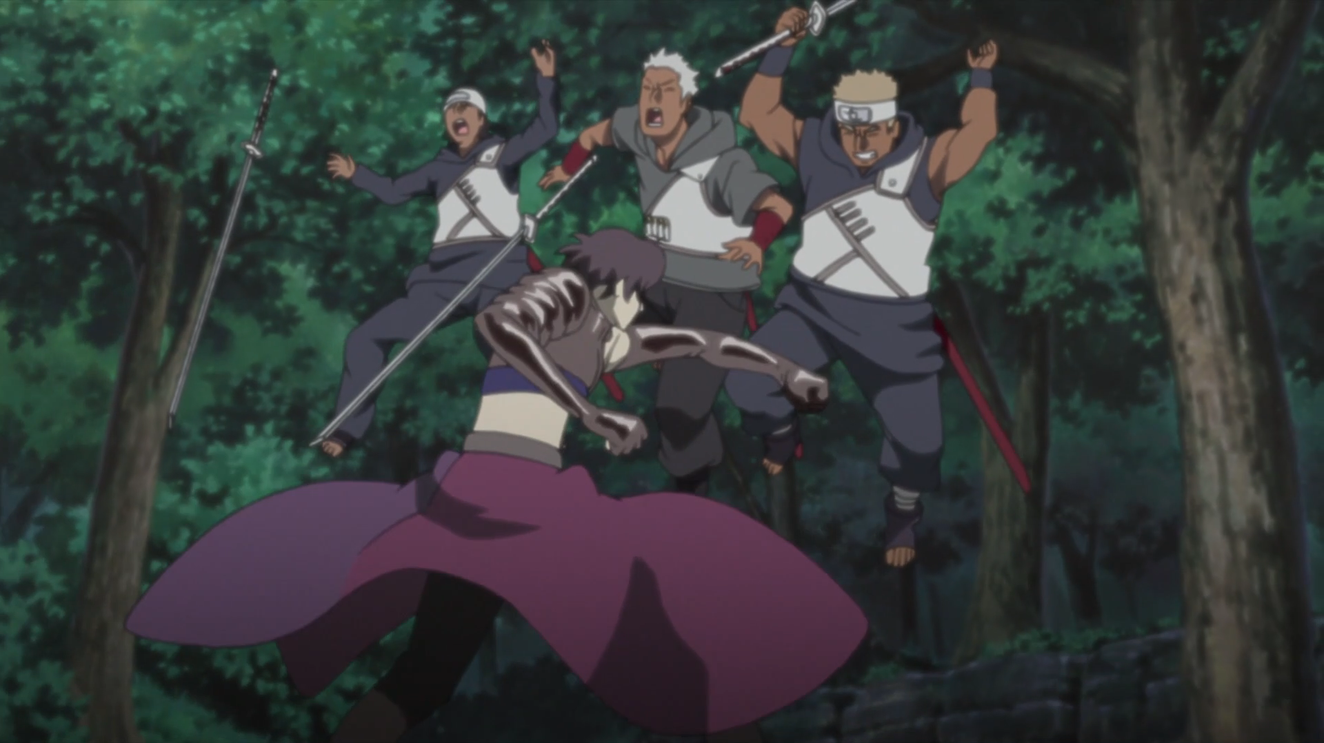 He soon caught up to the remaining two Haze Quadruplets and Konoha-nin, striking down the former with a sneak attack. As Deepa calmly showed off his impervious body, Victor arrived, deciding that Deepa was taking too much time and causing too much of a scene. Victor promptly faced off against the two jōnin while Deepa faced the genin, much to his displeasure. The genin tried to coordinate their efforts, but Deepa's technique proved unfazed and quickly defeated them. Asaka, the last of the quadruplets, offered to hand over the Hashirama Cell. Deepa gladly accepted the offer, but was then deceived by Asaka, who used his kinjutsu to attack Deepa, which failed. As Deepa turned his attention back on a fallen Boruto, Deepa was surprised by Mitsuki's Sage Mode. While unable to hurt Deepa, it slowed him down long enough for Mitsuki to retreat with his team-mates. Reluctantly, Deepa decided not to pursue as he had achieved his goal of retrieving the Hashirama Cell.