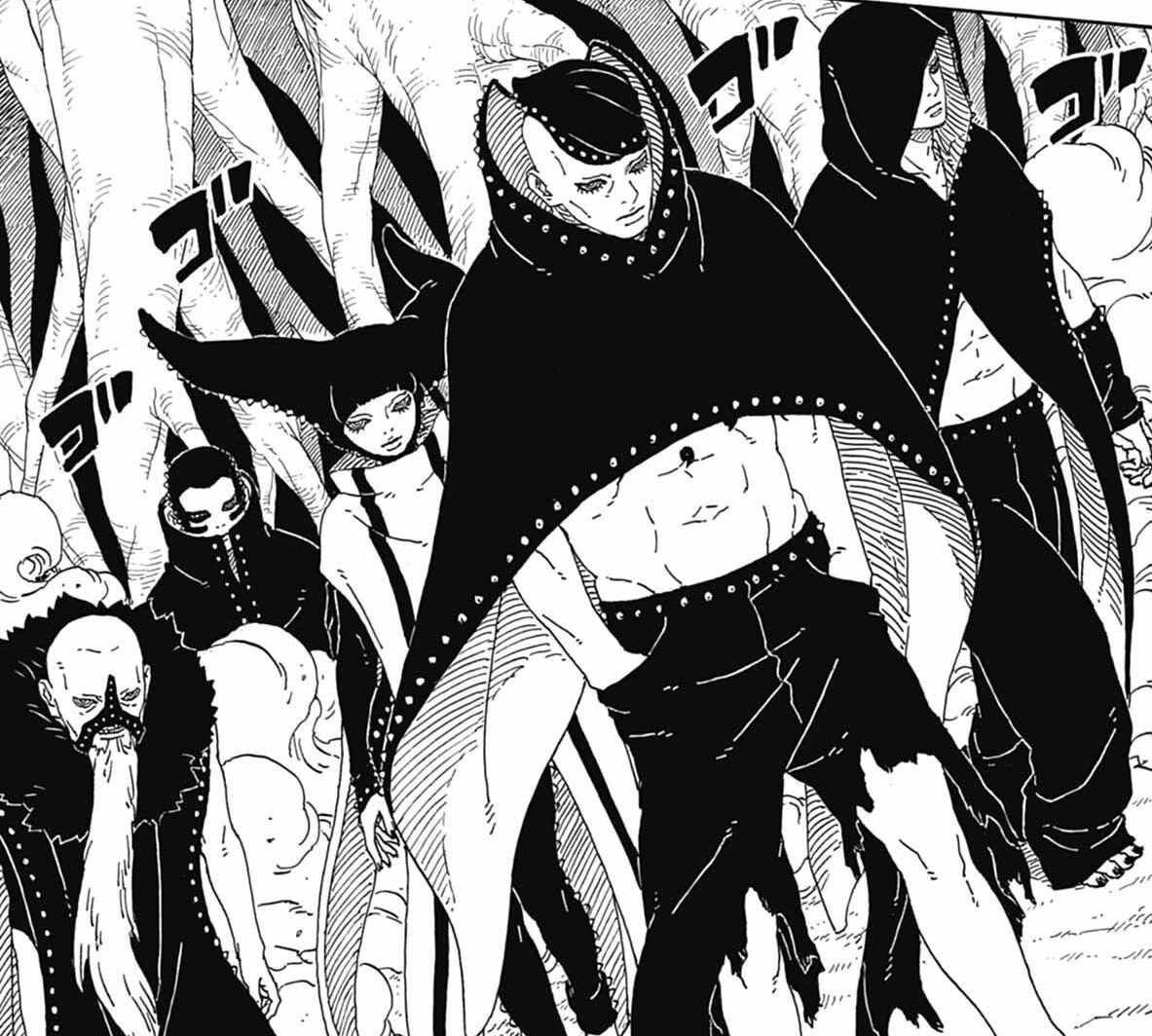 After Code finished fragmenting Kara's Ten-Tails, the remains eventually became Jura, a direct incarnation of the Ten-Tails. Similarly, after a Claw Grime consumes a person and sprouts into a small tree, in time the syphoned chakra will produce a humanoid being that mimics aspects of the victim's appearance and gain their abilities. Unlike a Ten-Tails and the standard Claw Grimes, these evolved versions possess self-awareness. Boruto speculates that because Code's White Kāma is an aspect of Isshiki's power, its Ōtsutsuki chakra triggered the Claw Grimes' evolution.[3] Once fully awakened, the instinctive need of the self-proclaimed God Trees to consume an Ōtsutsuki and become a true God Tree is temporarily overridden by their newfound curiosity and desire to acquire new knowledge.[4]