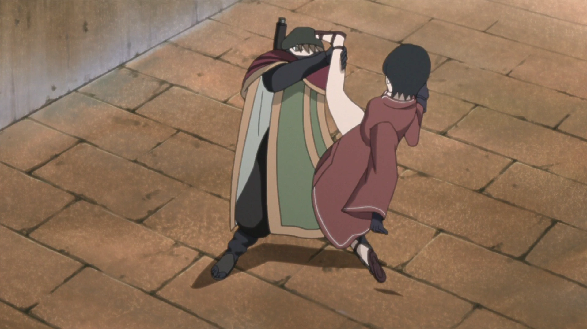 When Boruto confronted the Third Tsuchikage about this, Kū quickly subdued him. The old man then explain the nature behind his goal and voiced his desire not to hurt anyone, the genin made their move to escape. Kū quickly engaged in the fight, facing off against Akatsuchi. The fight quickly escalating, knocking over a massive column towards Ōnoki, who was narrowly saved by Boruto, who escaped with the elder. An enraged Kū then ordered his Akuta to retrieve Ōnoki.