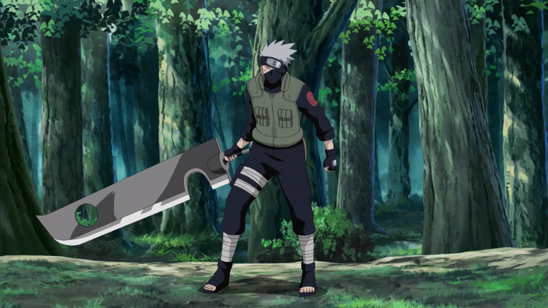 Kakashi's taijutsu can take various approaches in close combat. His time in the Anbu enables him to suddenly approach enemies from behind, unnoticed by even other Anbu.[55] Also, his ongoing competitions with Might Guy make him just as comfortable attacking from the front, striking with blazing speed and debilitating precision to quickly defeat multiple enemies. Kakashi is able to open at least one of the Eight Gates.[56] He is strong enough to wield Kubikiribōchō with one hand for extended periods of time unfazed,[57] has reflexes sharp enough to block attacks he is unable to see,[58] and has immense speed that allows him to perform hand seals at unreadable rates.[52]