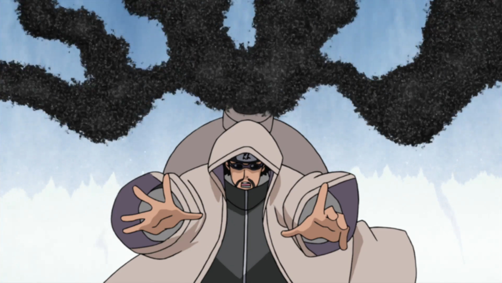Beyond offence, use of kikaichū grants several other options in battle. Aburame can use kikaichū to latch onto their surroundings, allowing them to perform manoeuvres they otherwise wouldn't be able to.[9] In cases of poisoning, kikaichū can be used to remove the poison from the body.[10] In the anime, kikaichū are shown distributing the chakra they've taken to allies, replenishing their reserves.[11] Defensively, kikaichū can surround their host as a protective shield[12] or impersonate their host to act as a decoy.[13] If the host is trying to escape from combat or merely wants to obfuscate their actions, kikaichū can spread across the area and emit their chakra, making it difficult for sensors to locate the host.[14]