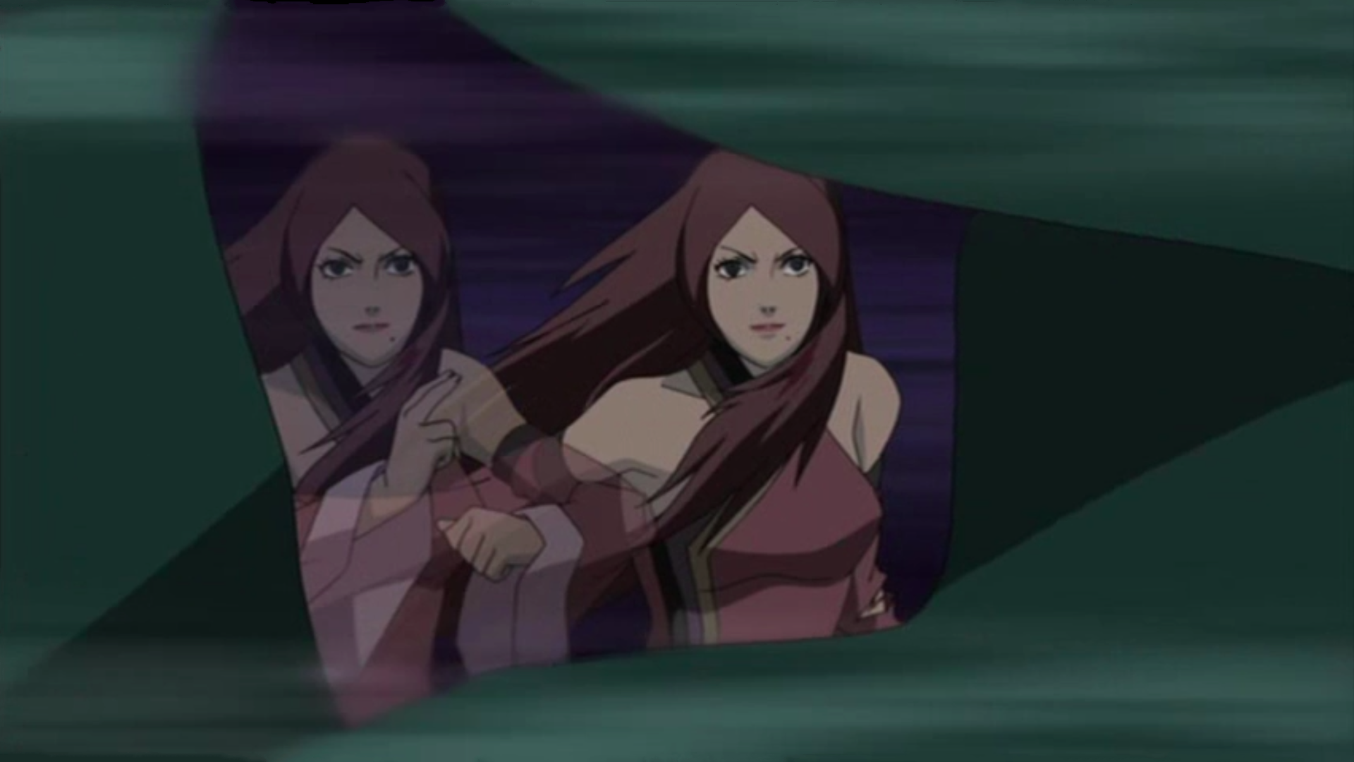 Naruto continues his fight with Fūka. Using kunai, he manages to cut her arm. However, by using her Colour Course Change technique, she seemingly regenerates her wounds. Using her Lightning Release: Lightning Rod, she shocks him as she prepares to finish him off. However, she is hit by two Naruto shadow clones performing Rasengan. The impact of the Rasengan seemingly destroys her body, but a withered Fūka survives. Using her Colour Course Change ability once more, she seems to regenerate her body back to her youthful state. Naruto throws a kunai at her, which she dodges easily; however, a shadow clone behind her throws his kunai as well, which slices her hair. Entering into an angered state, she dispels the shadow clone with her Earth Release: Rock Pillar Spears technique and attempts to finish the real Naruto off with her Water Release: Stormy Blockade, which summons a massive amount of water.