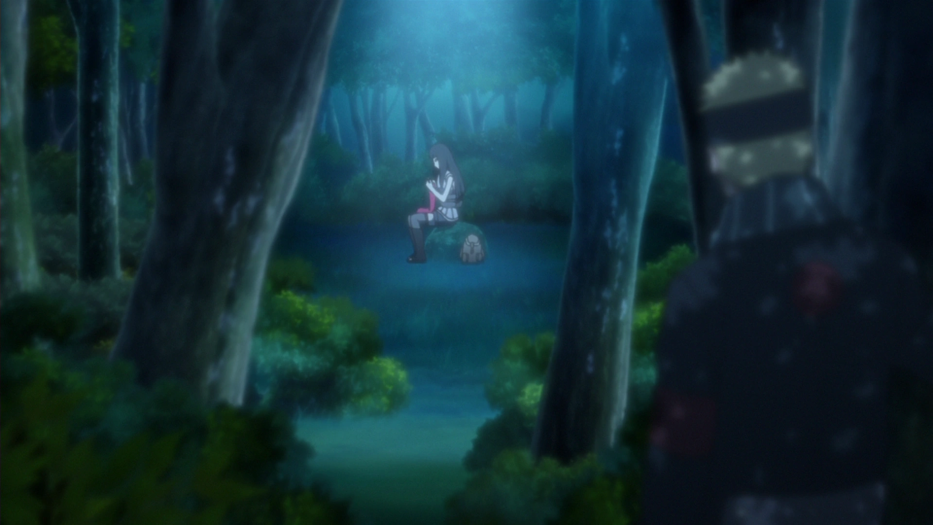 On the day of his enrolment in the Ninja Academy[20] - Naruto first met Hinata Hyūga, who was being picked on by three bullies. Despite not knowing her, Naruto immediately came to her defence, but he was outnumbered and knocked unconscious, and the bullies damaged his red scarf. When Naruto awoke, Hinata thanked him for helping her and returned his scarf to him, but he let her keep it. He was unaware that the girl's growing affections for him began from that moment onwards.[21]