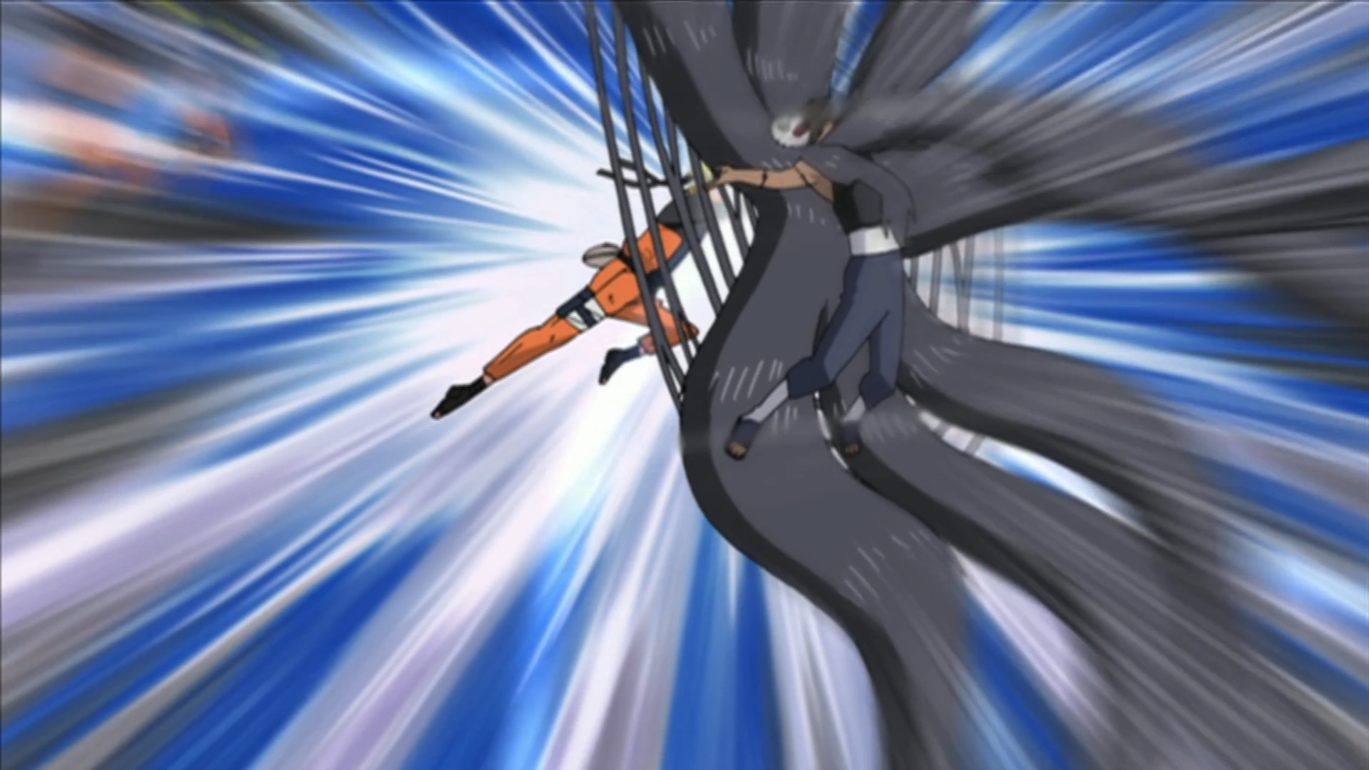Naruto attacking Gaara with his Naruto Uzumaki Two Thousand Combo.