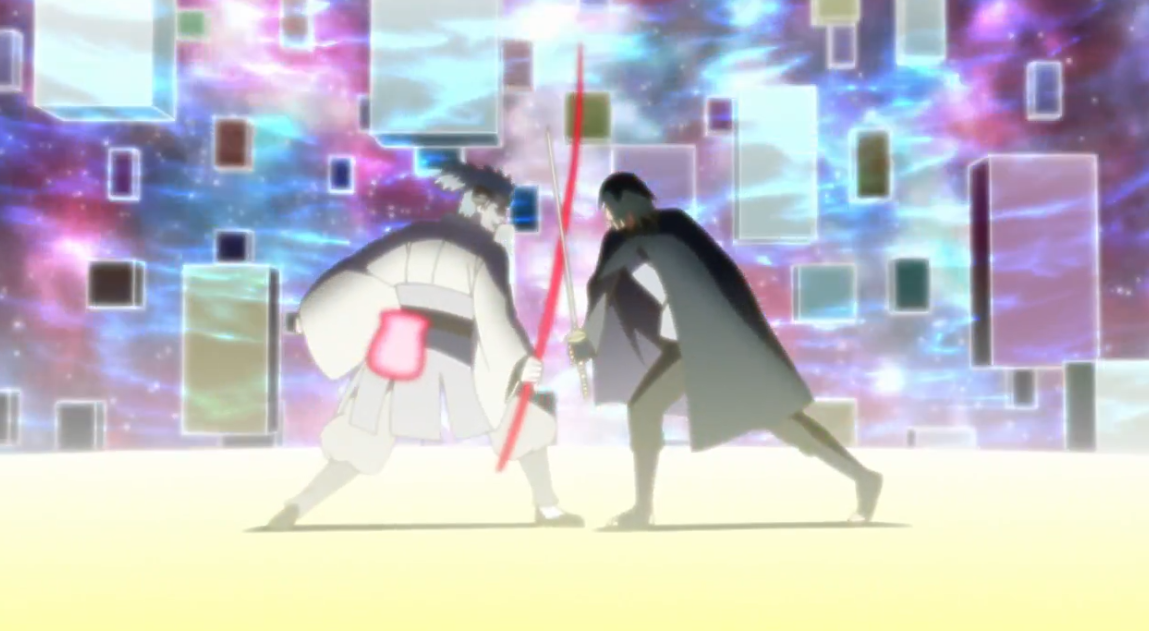 At the same time, Sasuke retains some of the ruthlessness he had when he was victimised by the Curse of Hatred: he offered the child Shin a chance to stand down when he stood between Sasuke and his real target, the adult Shin, but did not have any reservations cutting down a child when he refused and when Shojoji saw Sasuke was interrogating him, Sasuke taunted him by saying he knew full well how far Sasuke was willing to go to obtain information he needed.