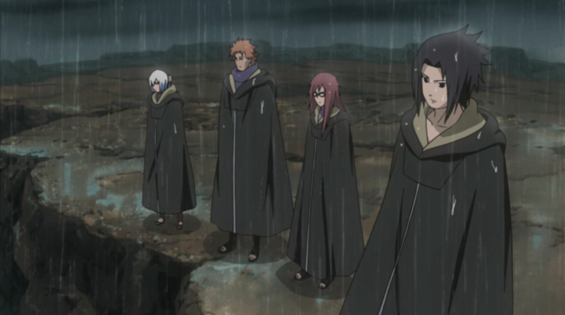 Prior to Sasuke's defection, Kakashi tries to point out the contradiction in Sasuke's viewpoint: he is driven to gain power because he lost his family, yet sacrifices the family he still has (Team 7) in order to gain that power, which did have a profound impact on Sasuke and would have turned him away from the path of darkness had he not been influenced by the Sound Four. In Part II, Sasuke allows Orochimaru to experiment on him as long as he becomes stronger, only to turn against Orochimaru for using him in the first place and acquires new teammates with abilities that could further his goals. Sasuke initially retained his morals by setting a firm no-kill policy for himself and his team against those unrelated to his revenge and openly expressing disgust at Orochimaru for his horrific experiments. In addition, despite having became cold towards his old team, Sasuke for a brief period of time was able to become attached to his new teammates, showing at that point he still subconsciously held on to the notion of teamwork, comparing them to the bond he had with Team 7 and pushing himself to extremes to save them when they were overwhelmed by Killer B. In the end, however, as his hatred increased, Sasuke's fall to darkness steadily eroded much of the goodness he once had: at the Kage Summit, he slaughtered numerous samurai in cold blood, left Jūgo and Suigetsu without caring for their fates, and recklessly challenged the five Kage before killing Danzō Shimura; he tries to kill Karin and Team 7 when they impede or attempt to dissuade him from his objectives;[17] he allies with Tobi and Akatsuki when their goals align, but leaves them without comment when he no longer needs them. His abandonment of all his former loyalties and his criminal acts convince his former classmates that Sasuke is beyond salvation.
