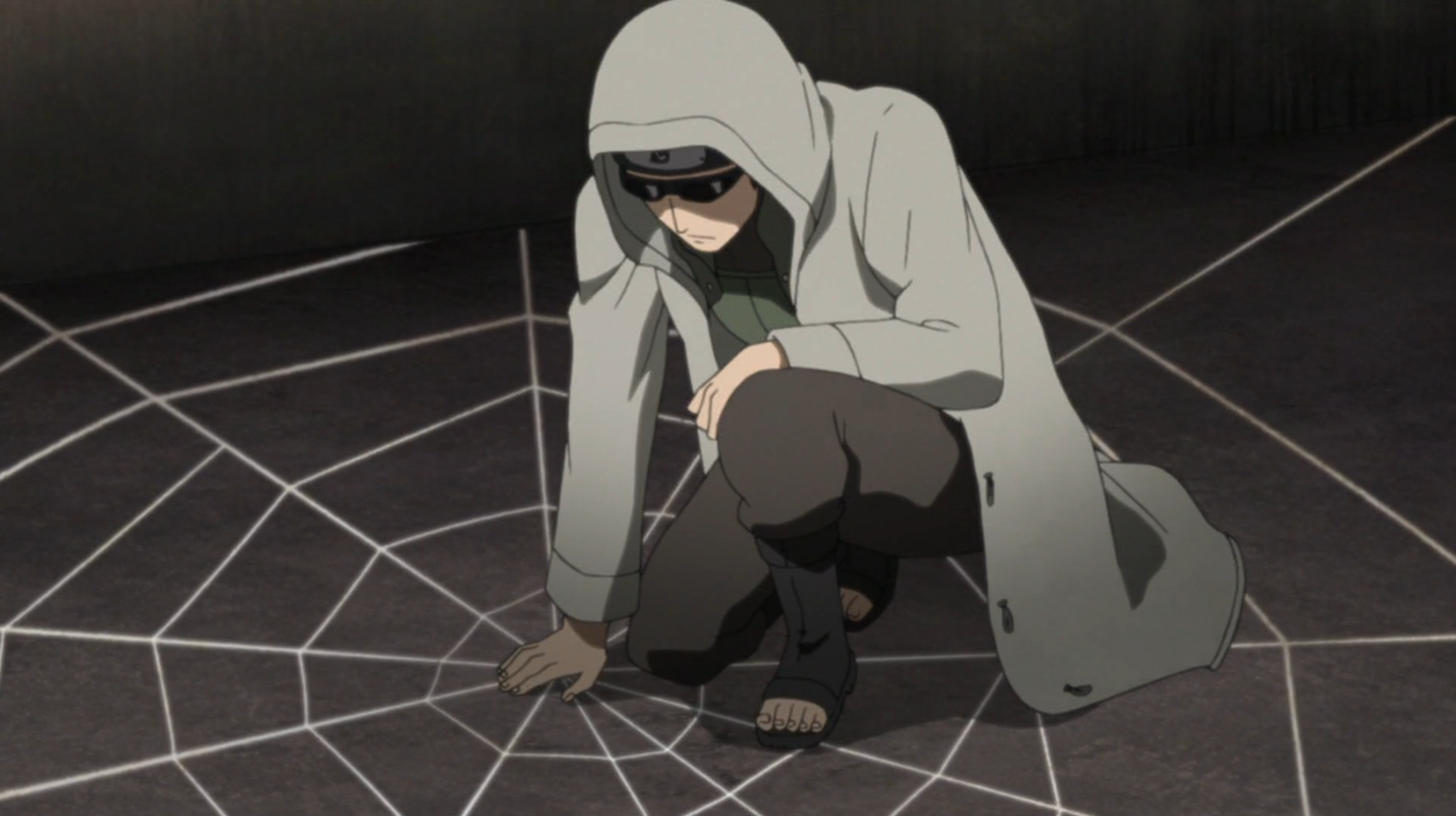 During Part II, his appearance became even more mysterious, with his jacket hanging down to his knees and the addition of a hood that obstructs his face even more and a satchel on his back. This current appearance makes it harder for people like Naruto to recognise him right away. During the Fourth Shinobi World War, he wears a flak jacket under his hooded-one.