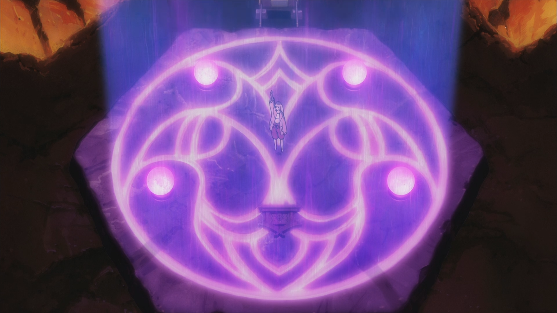 The next nine seals will cause the gate-like seal leading to Mōryō's body to rise above the ground. This gate seems to be laid on its back.