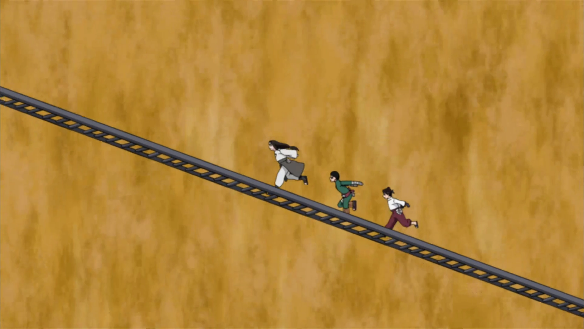 Ultimately, Tenten's team arrive in time to qualify. The following day, the second exam began. Each team was each given either a Heaven or Earth scroll and were required to obtain the missing scroll and bring them to the main building of the Demon Desert within three days. [28] As Neji's team began searching for enemies, they were soon encountered by a Suna-nin team. Sen removed a genjutsu, revealing to Tenten's team that they were standing in quicksand and were dragged into Sand Waterfall Pit. After managing to escape the pit, they found Team Shira and saved them from their treacherous fellow Suna-nin. As Neji asked why they attacked Shira's team at all, it was explained that they had no respect for Shira as a ninja since he held no skill in ninjutsu nor genjutsu.[29]