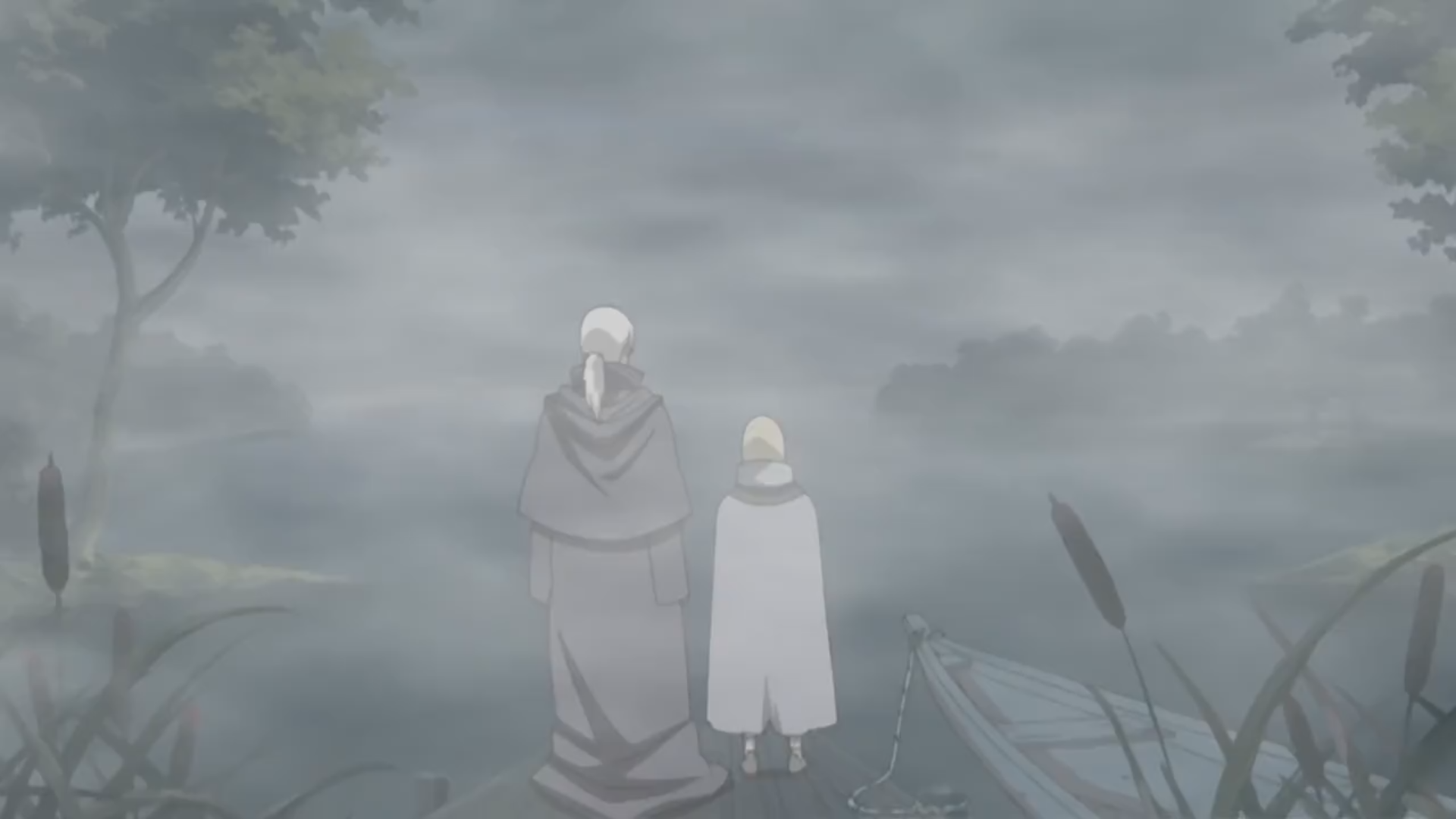 Kabuto taking Yūkimaru to the lake where the Three-Tails was.