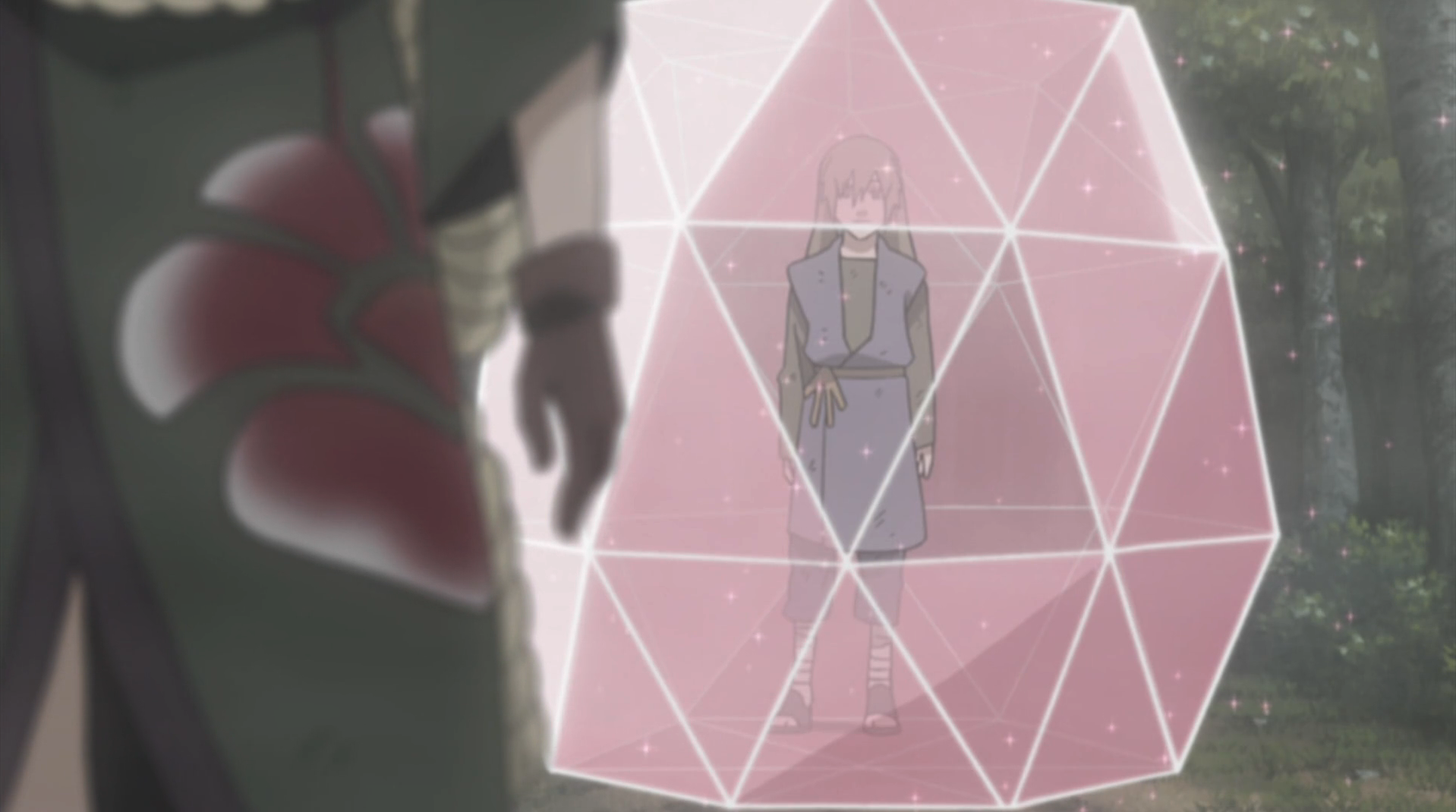 While Naruto fought with Kabuto, Guren and Yūkimaru fled. Kabuto sent Rinji's reanimated corpse after them, so Guren defended Yūkimaru. When her Crystal Release attacks proved futile against Rinji's bats, Guren encased herself and Rinji in crystal, and they fell into the lake. Believing Guren to be dead, Yūkimaru let loose his power, driving the Three-Tails into a frenzy, and shattering the seal the Konoha ninja were very close to completing. Once the beast was driven off, Naruto found Yūkimaru, and brought him back to the other Konoha ninja to rest. Whilst there they discovered that his body had not been able to handle the strain, and he had lost his ability to control the Three-Tails.