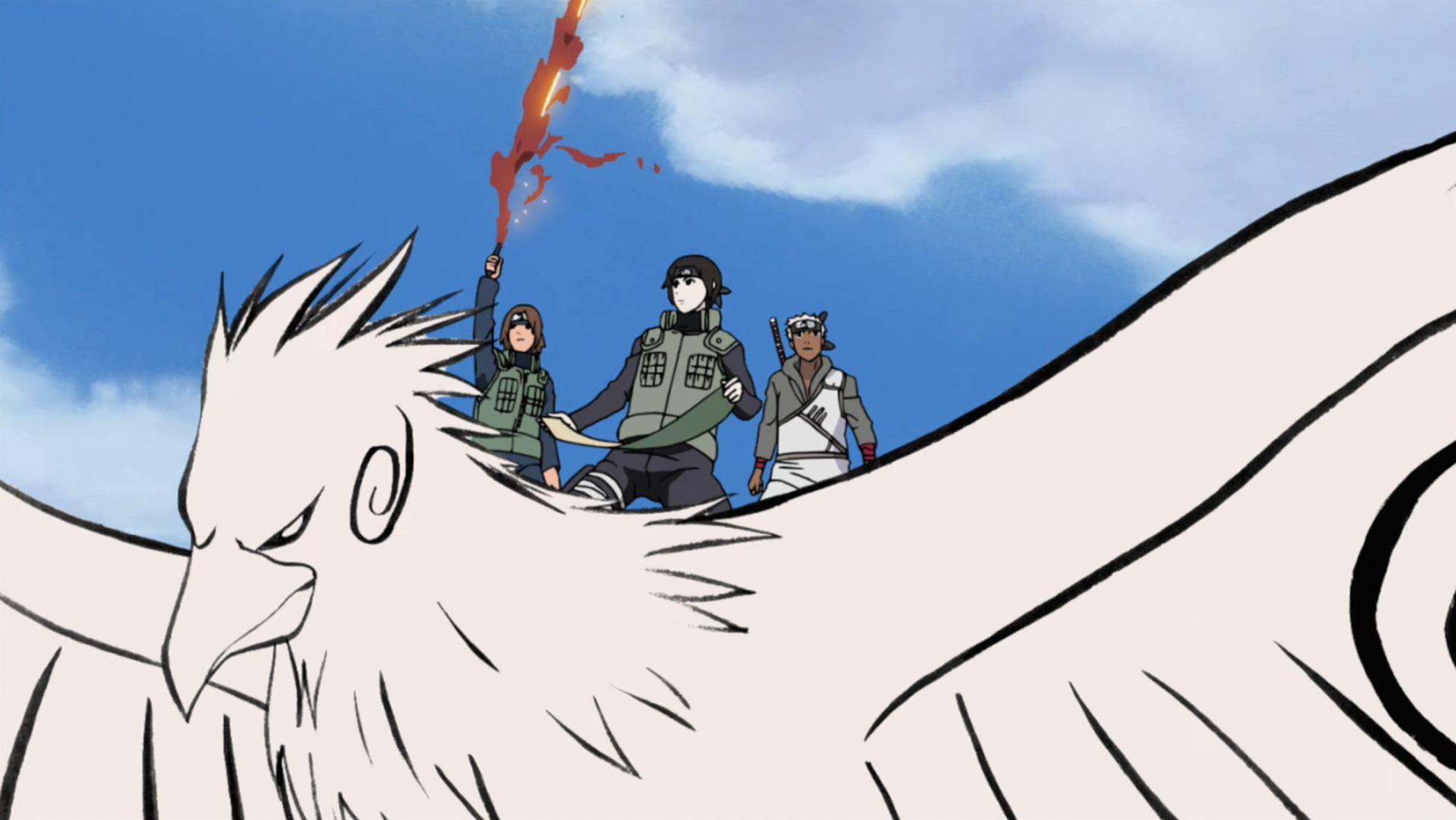After Deidara used Shin as bomb, Kiri was confused as to what had happened outside, and Zaji assured him that everyone from their team was still alive. After the battle in concluded and the Surprise Attack Division advanced, they encountered Zabuza, Haku, Gari and Pakura, while riding on Sai's ink birds. After Sai's first attack, Zaji lights a flare, which signalled Kakashi Hatake and the rest of the Third Division. Shortly afterwards, Haku used his Demonic Mirroring Ice Crystals to knock everyone off the ink birds after their assault on the revived shinobi failed. On the ground, Zaji recognised Gari and Pakura and stated that they were all shinobi with kekkei genkai, to which Zabuza retorts that he was the exception.